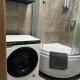 Inside the apartment, guests will find a full kitchen equipped with a stovetop, microwave, refrigerator, kitchenware, an electric kettle as well as tea and coffee making facilities paired with a dining table for meals at home. The room includes two beds featuring non-feather synthetic pillows alongside additional comforts such as heating and hardwood flooring throughout. A washing machine with clothes drying rack adds to convenience while bathroom essentials include a bathtub or shower with shampoo, body soap, slippers and toilet.