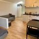 L'appartamento dispone di una camera da letto con letto singolo o matrimoniale, arricchita da pavimenti in parquet e riscaldamento per garantire comfort durante tutto l'anno. Un angolo cottura completo comprende frigorifero, bollitore elettrico, macchina del caffè e utensili da cucina che permettono preparazioni autonome dei pasti, inoltre sono presenti un tavolo da pranzo, una scrivania funzionale e una zona soggiorno conviviale. Il bagno privato è dotato di doccia con set cortesia incluso come bagnoschiuma e prodotti da bagno omaggio.